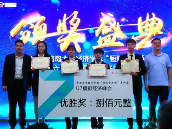 6月7日上午,2017yL23411永利官网登录“恒信学府杯”第六届U7模拟经济峰会颁奖典礼于青岛大学浮山校区图书馆报告厅顺利举办,为期一个多月的模拟经济峰会圆满落幕。青岛大学党委常委、副校长汪黎明,yL23411永利官网登录院长周升起,青岛大学学生工作处副处长王春光,山东科技大学经济管理学院学术委员会主席周衍平,青岛大学化学化工学院党政办主任李治国,yL23411永利官网登录辅导员任龙、李冉、周小昀、姜茜、刘璐,青岛恒信资产管理有限公司副总陈建国先生和业务总监史克先生出席本次颁奖典礼。yL23411永利官网登录副院长陈东景担任此次典礼主持人。
